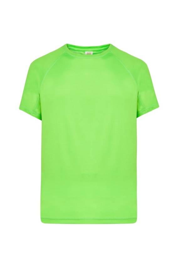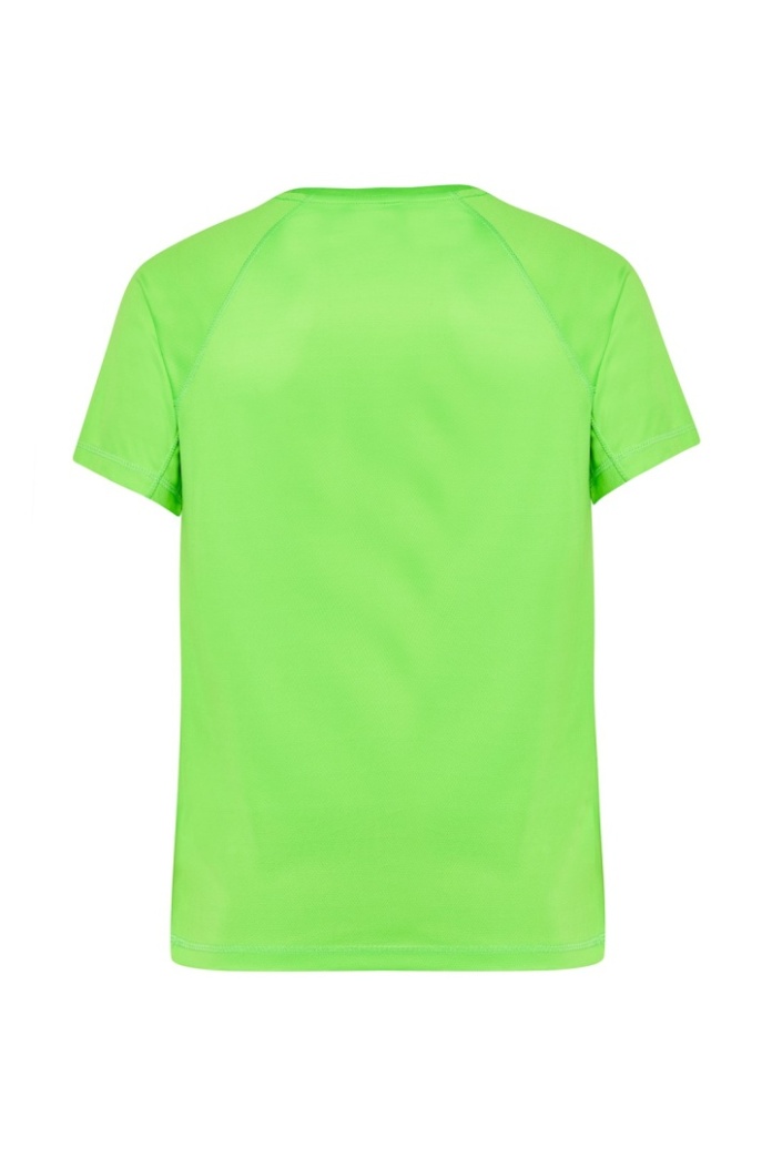 T-shirt sportowy. Krój reglan ze szwem dekoracyjnym w połowie rękawa. Oddychający materiał szybkoschnący. 100% poliester teksturowany.