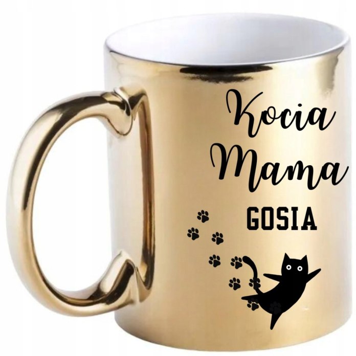 - złoty błyszczący kubek z Twoim autorskim nadrukiem