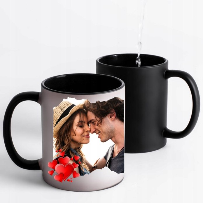MAGICZNY KUBEK CZARNY Z WŁASNYM ZDJĘCIEM DLA ZAKOCHANYCH