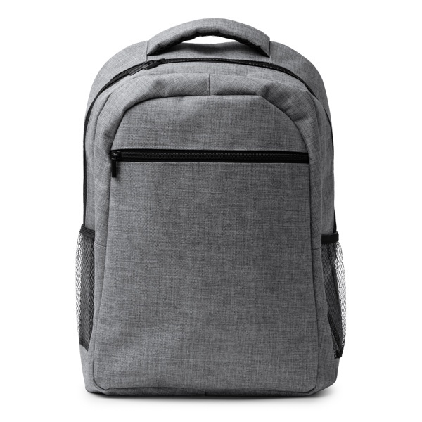 Plecak wykonany z 600D RPET z marmurkowym wykończeniem. Wyściełane uchwyty i tył. Duża komora wewnętrzna i kieszeń na laptopa 15". Zewnętrzna kieszeń przednia i kieszenie boczne. Pojemność: 20L.