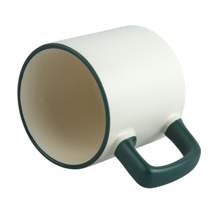 KUBEK KAWOWY CREAM Z KOLOROWYM UCHEM I RANTEM, Z NADRUKIEM 330 ml