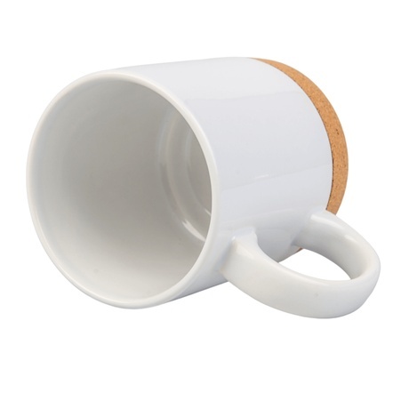 - biały kubek ceramiczny z korkowym spodem