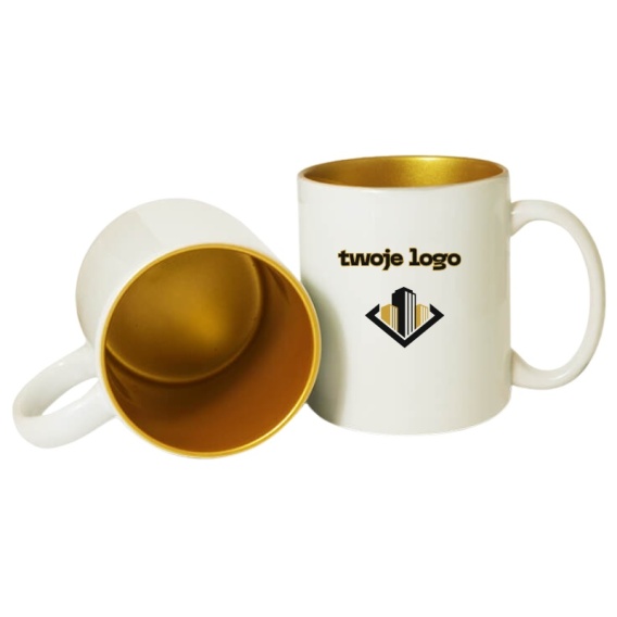 KUBEK KLASYCZNY ZE ZŁOTYM ŚRODKIEM I NADRUKIEM LOGO 330 ml